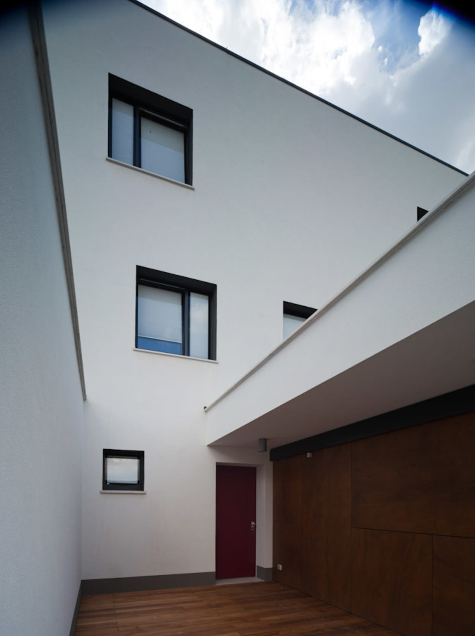 Un lotto commerciale dismesso nella prima periferia di Udine ed attraversato da una vecchia linea ferroviaria è stato convertito in un'area residenziale innovativa ad alta prestazione energetica, certificata dal protocollo Casaclima. Il complesso è caratterizzato da due edifici separati, uno più urbano che costruisce il fronte verso la strada ed uno più minuto posto in relazione con il tessuto residenziale retrostante. I due volumi sono tenuti insieme dal disegno dell'attacco a terra che definisce il sistema degli accessi, la suddivisione tra gli spazi aperti e che da luogo ad articolate sequenze spaziali. Gli edifici sono disposti parallelamente al piccolo corso d'acqua, verso il quale si affacciano i giardini privati. La zona destinata agli accessi è posta sul retro ed è disegnata come un unico spazio continuo, caratterizzato dalla pavimentazione in ghiaino lavato. I garage, posti tutti al piano terra, hanno gli accessi integrati nel rivestimento in legno delle facciate ed una copertura verde che da luogo a giardini pensili su cui si affacciano gli alloggi posti al primo piano dell'edificio più alto. L'edificio principale, a quattro livelli, contiene 15 unità abitative di diversa tipologia ed è caratterizzato dalle terrazze a patio, scavate nel volume compatto che ne disegnano il coronamento. L'altro edificio è composto da cinque unità in linea su due livelli ed è caratterizzato dall'articolazione della copertura a due falde e dalle due residenze di testa. Progetto e DL, strutture ing. Alessandro Nutta, impianti elettrici Studio Venica